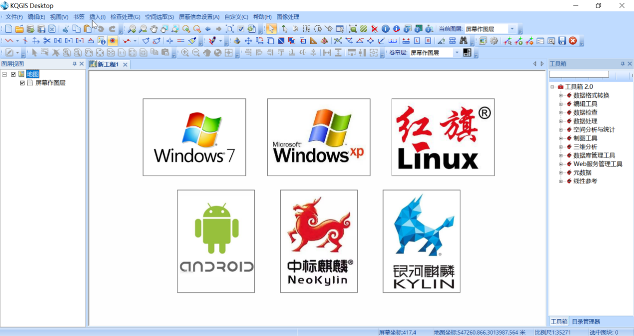 跨平臺軟件技術(shù)包括多個(gè)方面,能實(shí)現應用程序在多個(gè)平臺下運行,提高軟件的重用性。KQGIS Desktop利用跨平臺GIS技術(shù),實(shí)現了對多種國內外操作系統(Windows、Linux、UNIX、Android等)和CPU架構(x86、ARM、MIPS等)的支持。