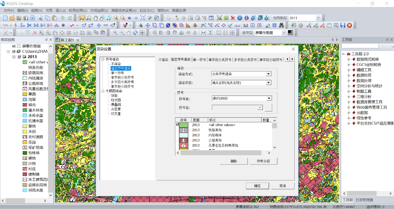 支持指定符號渲染、單一符號、單字段分類(lèi)符號、單字段分級符號、多字段分類(lèi)符號等多種符號渲染方式,實(shí)現地圖快速渲染;