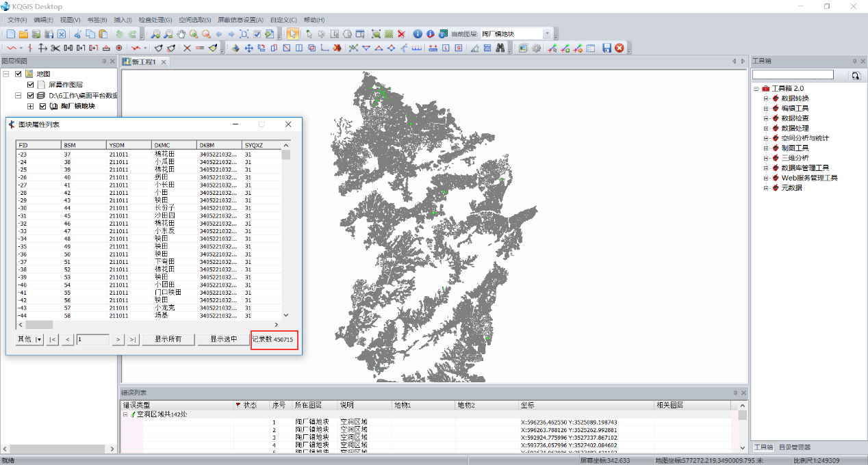 KQGIS Desktop支持高效的數據質(zhì)量檢查與批量處理,具備完善的數據檢查方案,支持數據錯誤的手工及批量處理,工作效率高。