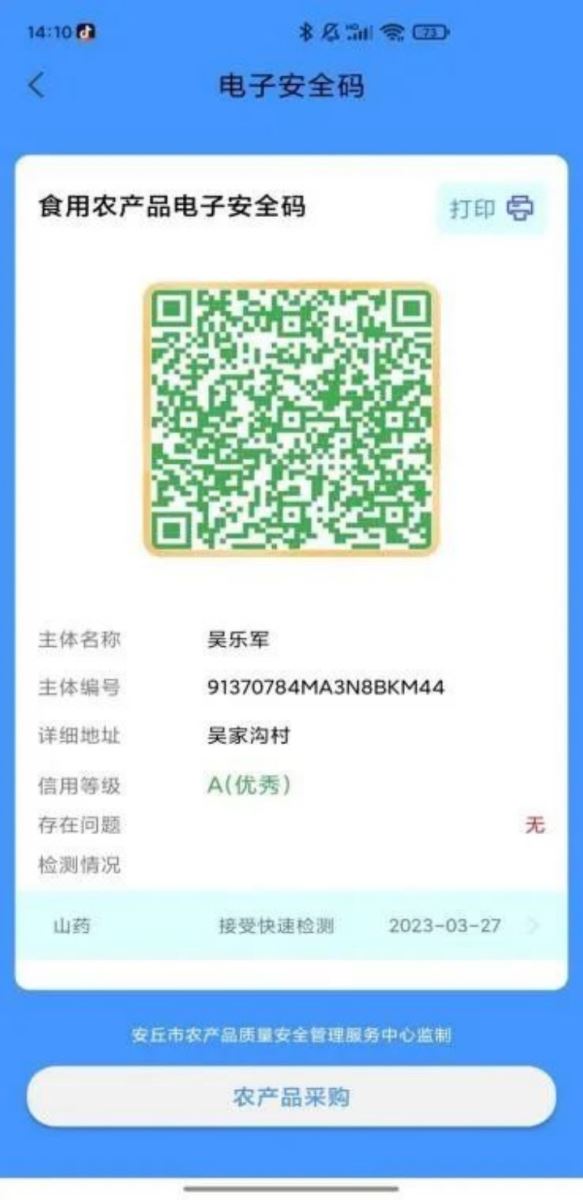 此外,平臺還高效賦能農產(chǎn)品安全的全社會(huì )監督,其創(chuàng )新應用食用農產(chǎn)品“電子安全碼”,建立政府、社會(huì )跨界協(xié)同合作機制,賦予每個(gè)種、產(chǎn)、銷(xiāo)主體“數字身份證”,包含種植、交易、檢測、信用等信息,通過(guò)買(mǎi)方掃碼監督賣(mài)方,變傳統政府單一監管為社會(huì )多元共治。